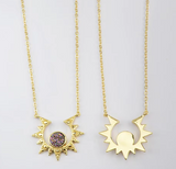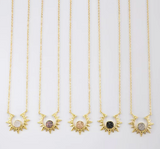 This is our beautiful Druzy Sunburst Necklace. It has a special shine that will make your day brighter!