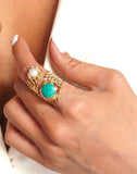 Adjustable Turquoise and Mother of Pearl Ring up to size 10